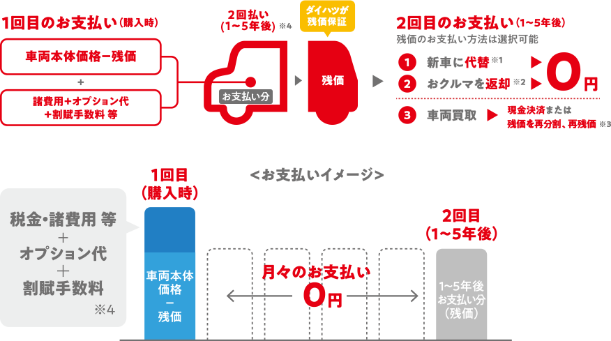 • お支払い期間については、販売会社により設定が異なります。(※4)詳しくは販売会社スタッフにお問い合わせください。